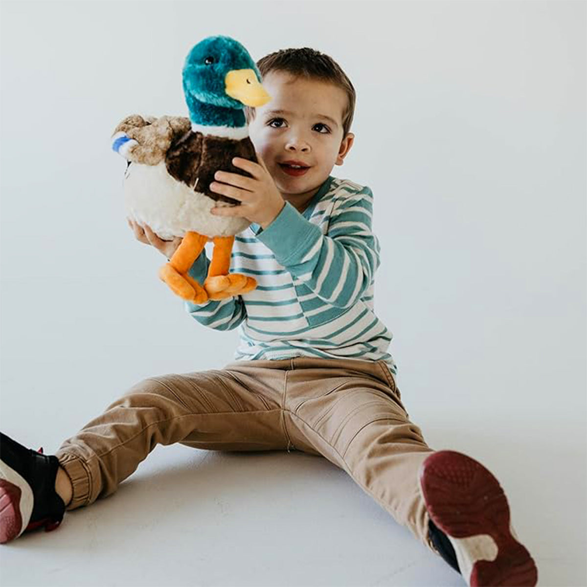 Ses ailes duveteuses et ses tissus colorés font de ce colvert un compagnon irrésistible, prêt à suivre les enfants dans toutes leurs aventures, à l’intérieur comme à l’extérieur. Conçu avec des coutures durables et fabriqué à partir de matériaux recyclés, ce canard en peluche combine douceur, robustesse et engagement écologique.
