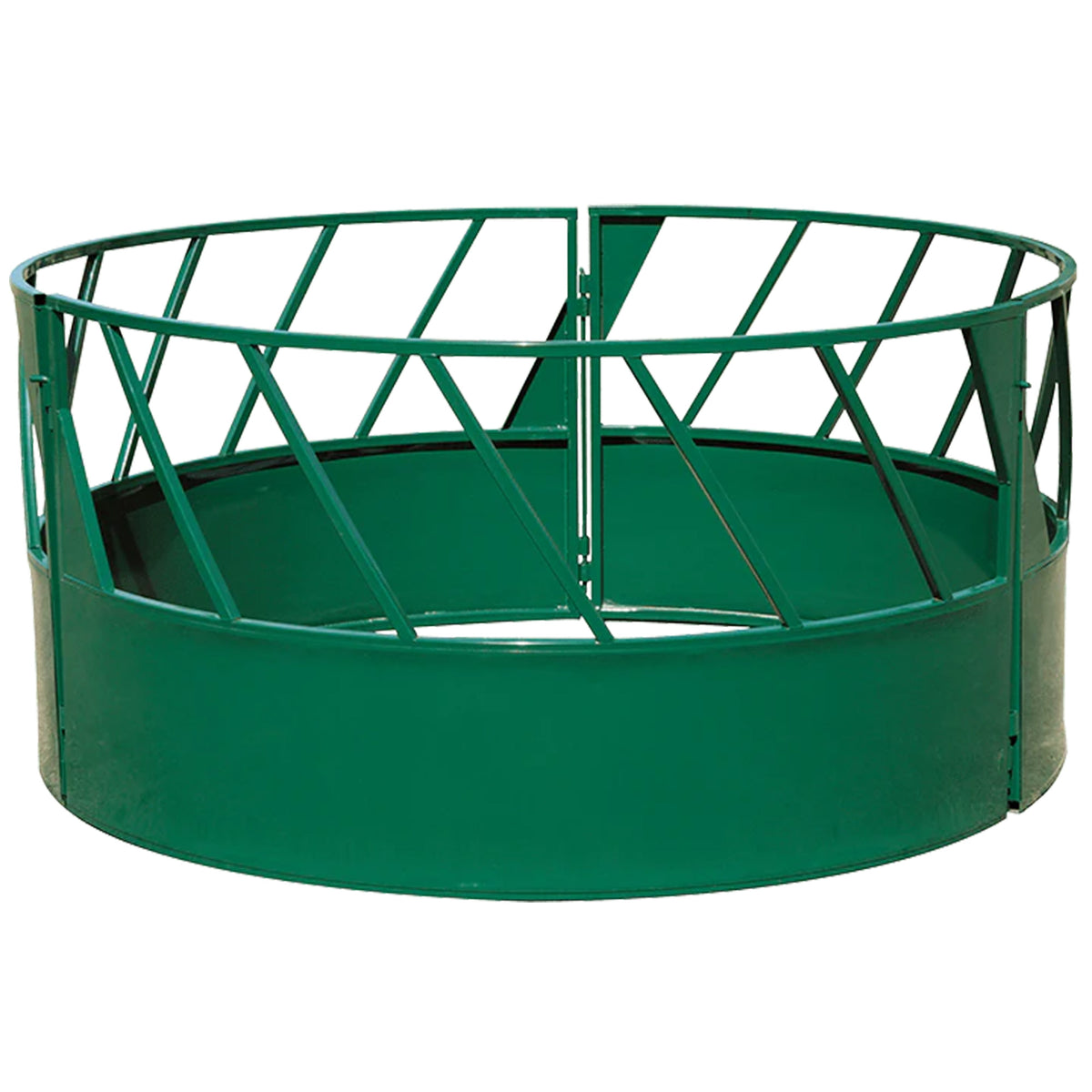 Avec ses trois sections faciles à assembler, elle atteint un diamètre de 8 pi 4 po et une hauteur de 48 po, permettant d’accueillir une balle ronde complète et de réduire le gaspillage de foin. Son poids de 330 lb en fait une structure stable et résistante, même face aux animaux les plus imposants.
