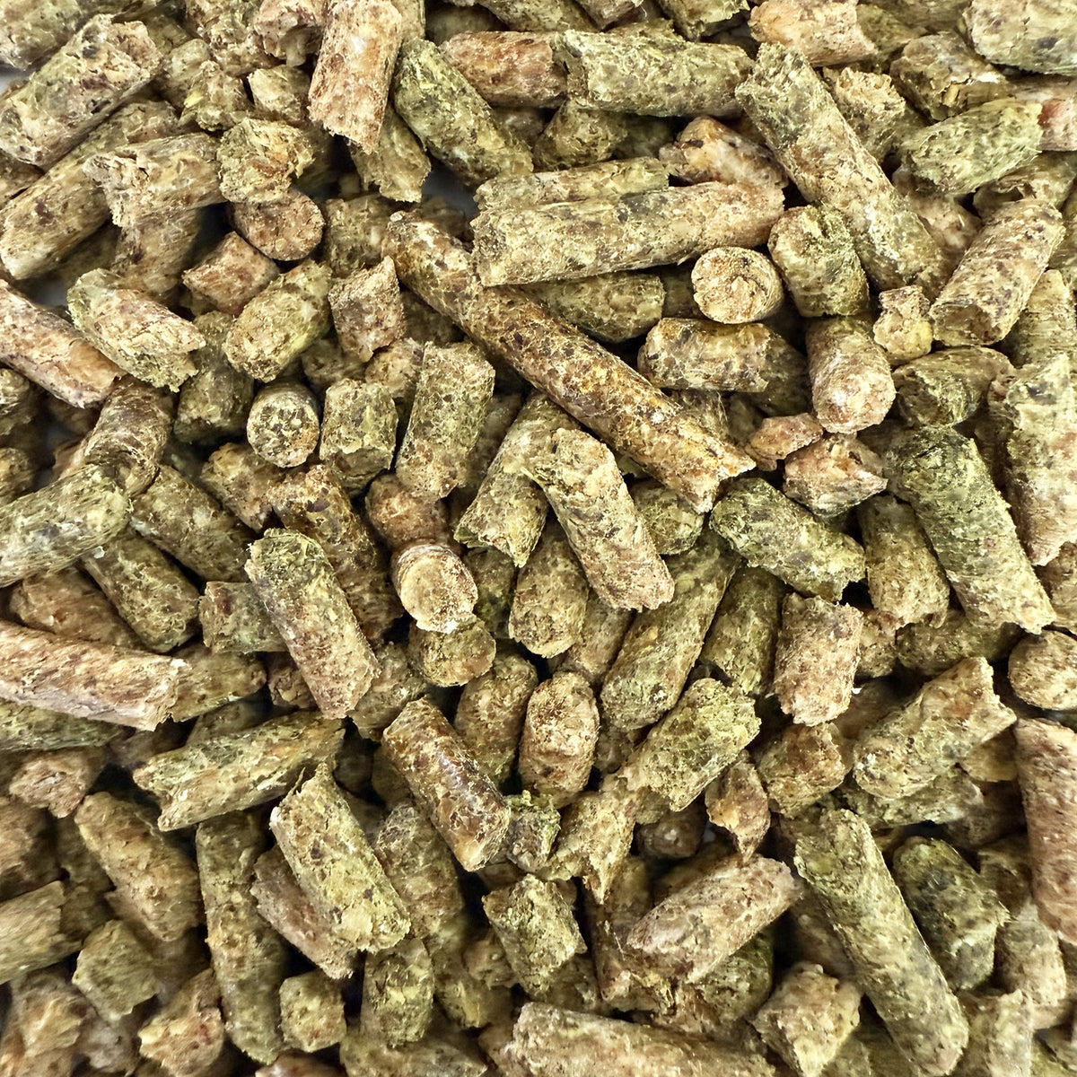 Ingrédients : farine de luzerne, écale de soya, protéines végétales, sources de vitamines et minéraux, vitamines du complexe B, levure.