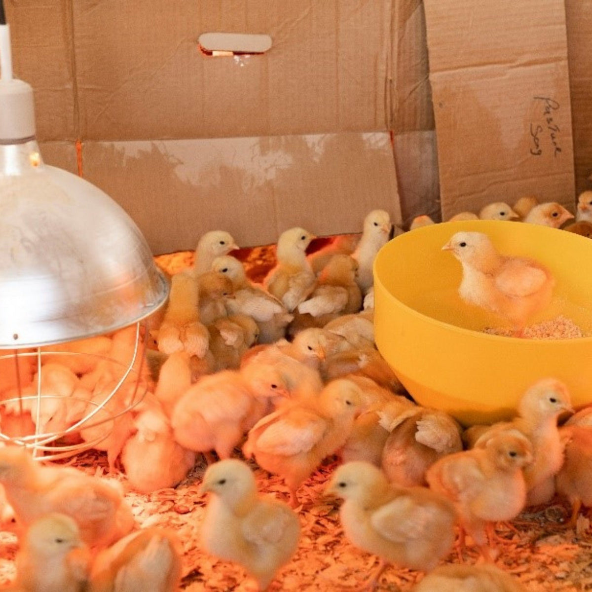 Gardez vos poussins au chaud ! Nous recommandons de maintenir la température ambiante entre 30 et 32°C pour les poussins durant la première semaine de vie.