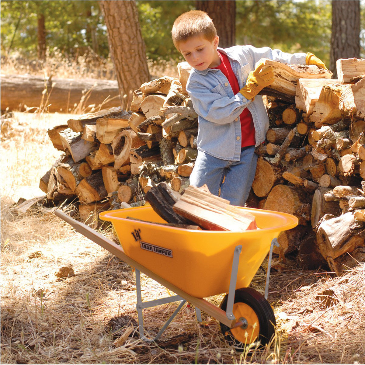 - Brouette en poly pour enfants Lil True Temper avec poignées en bois dur et pneu en caoutchouc moulé solide