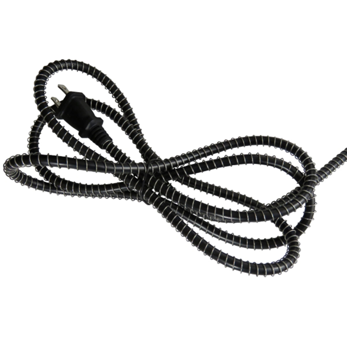 Cordon électrique protégé par un anneau métallique pour éviter le picage ou le grignotage.