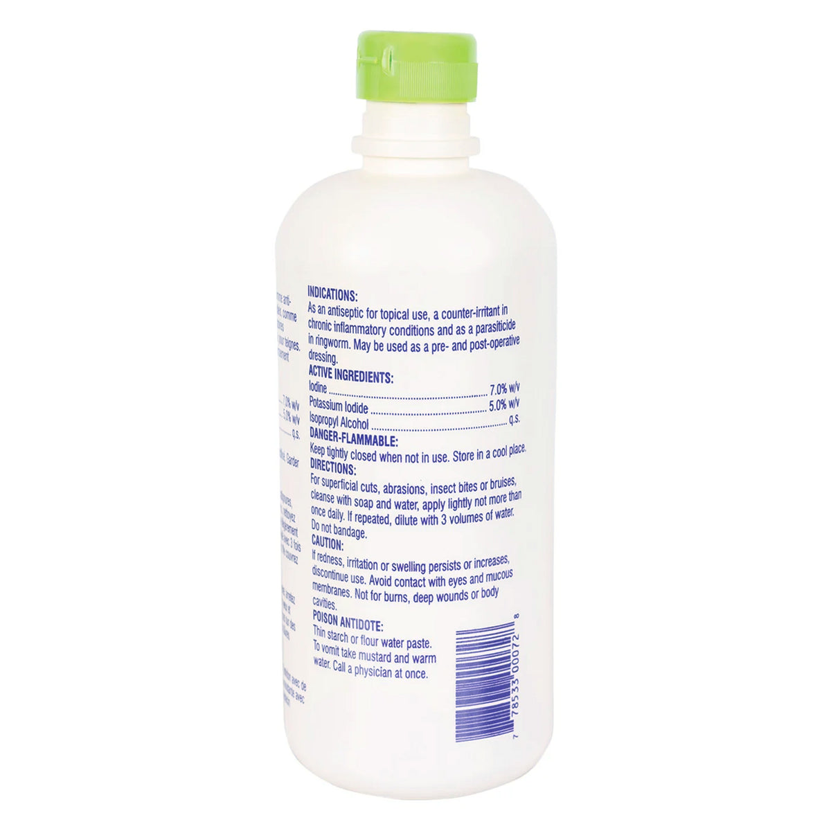 La Teinture d’iode Stronger est un liniment antiseptique puissant conçu pour une utilisation topique chez les animaux. Avec sa concentration à 7 % d’iode, elle agit efficacement comme contre-irritant dans les cas d’inflammation chronique et comme parasiticide, notamment contre la teigne. Elle peut également être utilisée en préparation ou en suivi chirurgical, à titre de pansement désinfectant.