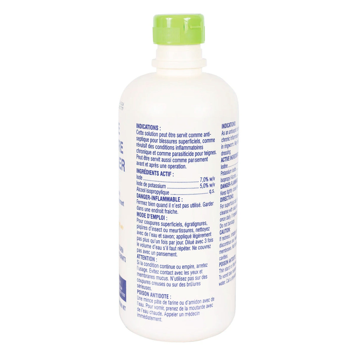 Fabriquée au Canada, cette teinture d’iode est un produit essentiel de la trousse de premiers soins en milieu agricole ou équestre.
